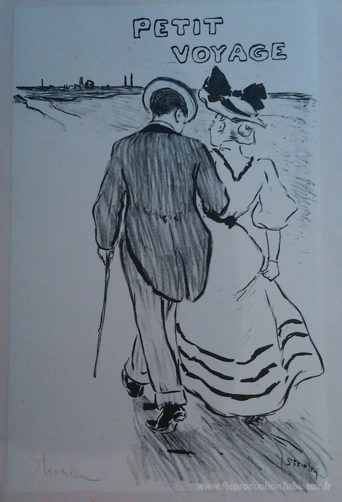 Nous vous proposons une reproduction artisanale sur toile du célèbre tableau 'Petit Voyage' de Theophile Steinlen, provenant du Musée de la Reproduction.