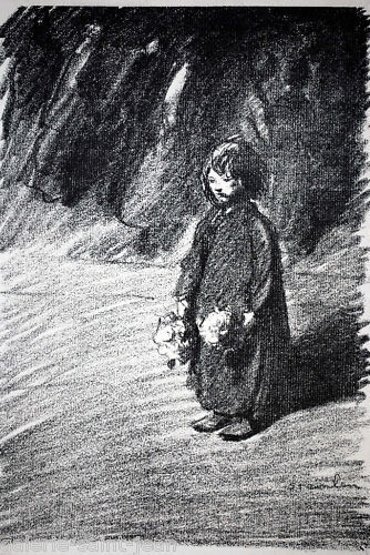Nous vous proposons une reproduction artisanale sur toile du célèbre tableau 'Petite fille de fleur' de Theophile Steinlen, provenant du Musée de la Reproduction.