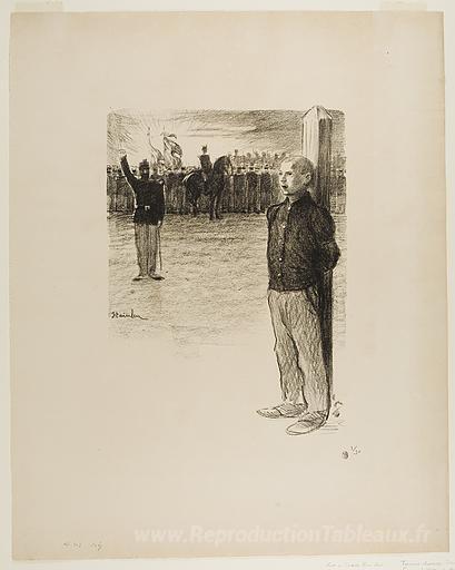Nous vous proposons une reproduction artisanale sur toile du célèbre tableau 'Réhabilitation Civile et exécution militaire' de Theophile Steinlen, provenant du Musée de la Reproduction.
