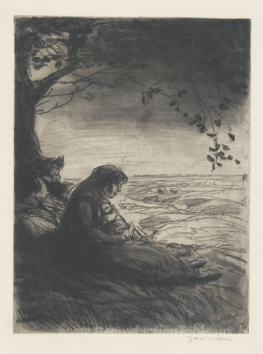 Nous vous proposons une reproduction artisanale sur toile du célèbre tableau 'Repos de Vagabonds' de Theophile Steinlen, provenant du Musée de la Reproduction.