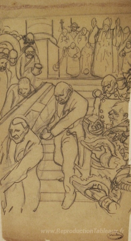 Nous vous proposons une reproduction artisanale sur toile du célèbre tableau 'Rochefort Se meurt' de Theophile Steinlen, provenant du Musée de la Reproduction.