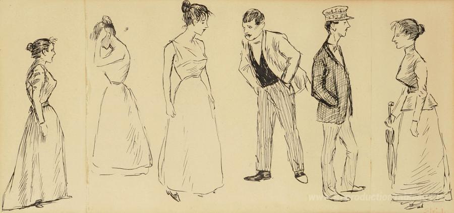Nous vous proposons une reproduction artisanale sur toile du célèbre tableau 'Sei Croquis de Personnages' de Theophile Steinlen, provenant du Musée de la Reproduction.