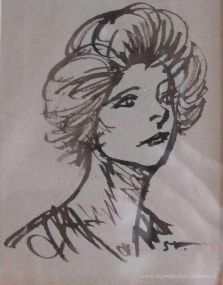Nous vous proposons une reproduction artisanale sur toile du célèbre tableau 'Tete de Femme' de Theophile Steinlen, provenant du Musée de la Reproduction.
