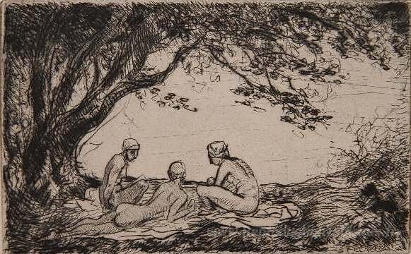 Nous vous proposons une reproduction artisanale sur toile du célèbre tableau 'Trois baigneus' de Theophile Steinlen, provenant du Musée de la Reproduction.