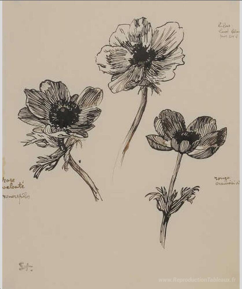 Nous vous proposons une reproduction artisanale sur toile du célèbre tableau 'Trois Etudes d'Aémones' de Theophile Steinlen, provenant du Musée de la Reproduction.