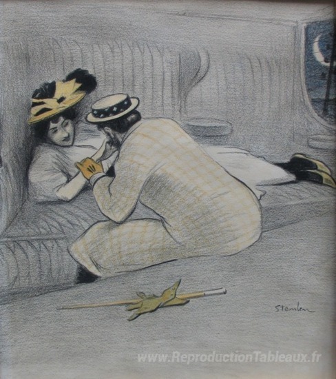 Nous vous proposons une reproduction artisanale sur toile du célèbre tableau 'Une femme d'honnette' de Theophile Steinlen, provenant du Musée de la Reproduction.