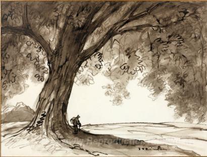 Nous vous proposons une reproduction artisanale sur toile du célèbre tableau 'Vagabond sous arbre' de Theophile Steinlen, provenant du Musée de la Reproduction.