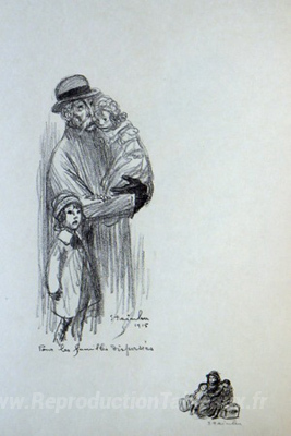 Nous vous proposons une reproduction artisanale sur toile du célèbre tableau 'Verser Les Familles Disperses' de Theophile Steinlen, provenant du Musée de la Reproduction.