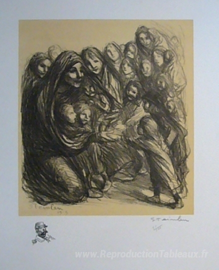 Nous vous proposons une reproduction artisanale sur toile du célèbre tableau 'Verser Les Fillettes des Soldats Tombes Au Champ.' de Theophile Steinlen, provenant du Musée de la Reproduction.