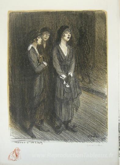 Nous vous proposons une reproduction artisanale sur toile du célèbre tableau 'Veuves d'un Louis' de Theophile Steinlen, provenant du Musée de la Reproduction.
