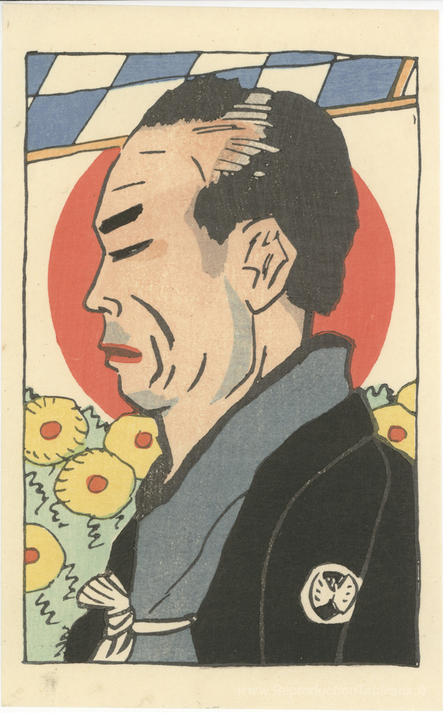 Nous vous proposons une reproduction artisanale sur toile du célèbre tableau 'Gorō dans le rôle de kyūzaemon' de Natori Shunsen, provenant du Musée de la Reproduction.