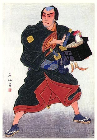 Nous vous proposons une reproduction artisanale sur toile du célèbre tableau 'Ichikawa Sadanji comme Sukune Taro' de Natori Shunsen, provenant du Musée de la Reproduction.