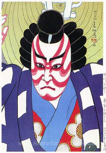 Nous vous proposons une reproduction artisanale sur toile du célèbre tableau 'Ichikawa Sansho comme Umeo à Kurumabiki' de Natori Shunsen, provenant du Musée de la Reproduction.
