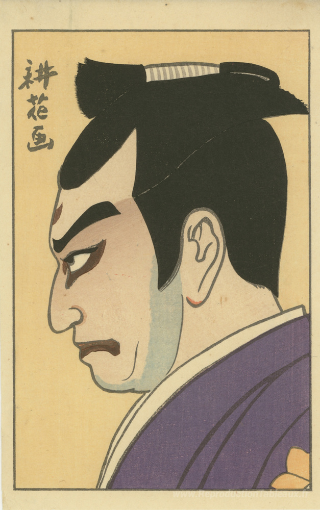 Nous vous proposons une reproduction artisanale sur toile du célèbre tableau 'Kōshirō dans le rôle de mitsuhide' de Yamamura Toyonari, provenant du Musée de la Reproduction.