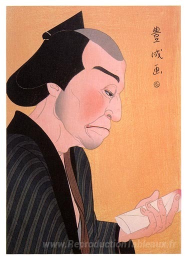 Nous vous proposons une reproduction artisanale sur toile du célèbre tableau 'Matsusuke comme Goroji' de Yamamura Toyonari, provenant du Musée de la Reproduction.