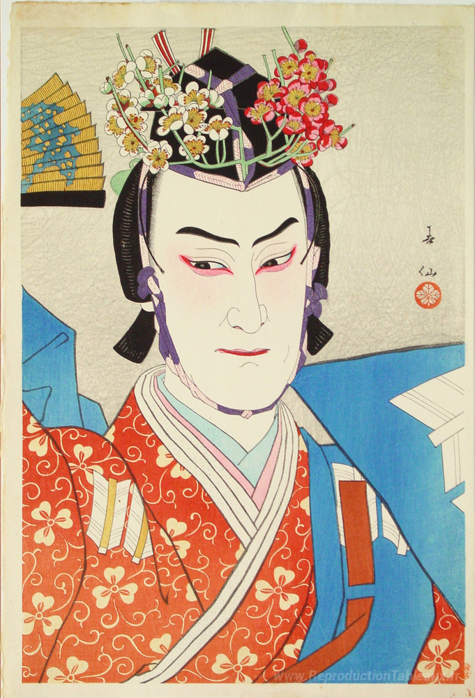 Nous vous proposons une reproduction artisanale sur toile du célèbre tableau 'Morita Kanya comme genta kagesuse' de Natori Shunsen, provenant du Musée de la Reproduction.