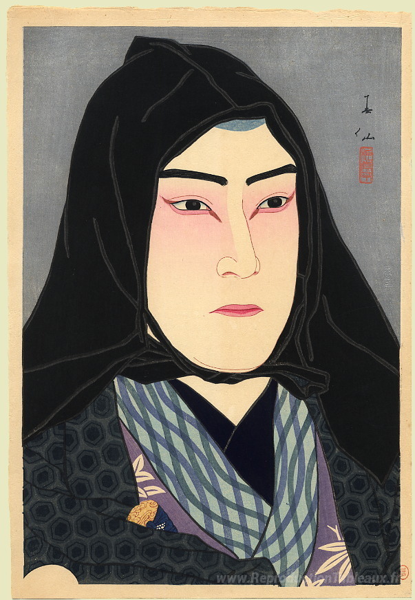 Nous vous proposons une reproduction artisanale sur toile du célèbre tableau 'Nakamura Fukusuke dans le rôle de Soshichi, un contrebandier' de Natori Shunsen, provenant du Musée de la Reproduction.