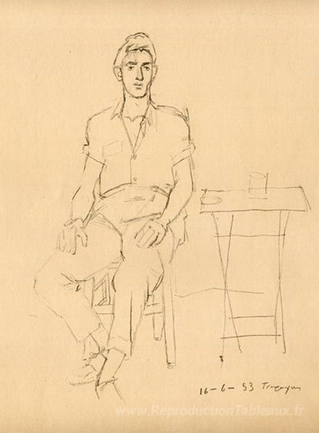 Nous vous proposons une reproduction artisanale sur toile du célèbre tableau 'Esquisser' de Yiannis Tsaroychis, provenant du Musée de la Reproduction.
