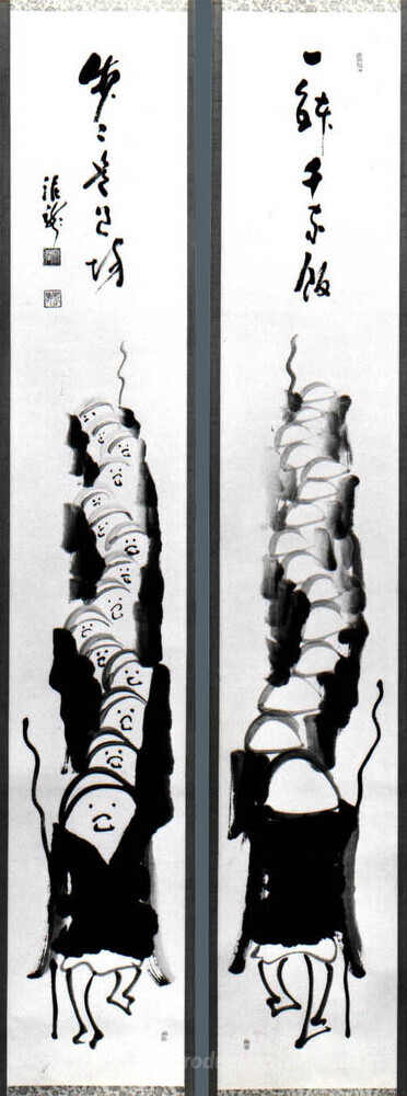 Nous vous proposons une reproduction artisanale sur toile du célèbre tableau 'Moines mendiants' de Deiryu, provenant du Musée de la Reproduction.